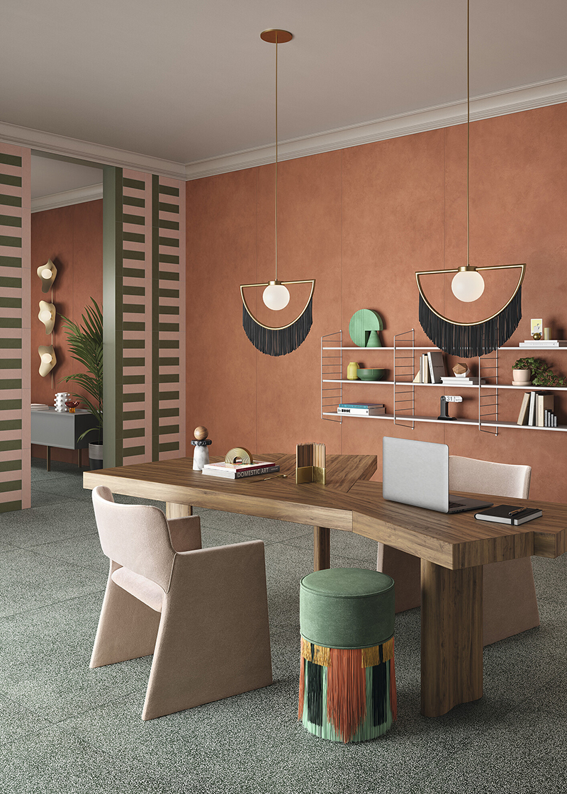 The 12 colour variations available were developed by Laviani, combining a methodical analysis of the current chromatic trends in architecture and interior design with his own proclivity for more expressive and natural colours. The result is a range of contemporary shades, inspired by both natural tones and the most sophisticated nuances, that can be easily combined with one another, as well as with other of the brand’s collections, thus allowing for the utmost expressive freedom. For example, the Canyon and Sunset nuances perfectly capture the effect of Apricot Crush. Thanks to the Slimtech 3plustechnology, Pigmenti is like a second ceramic skin, measuring only 3.5mm thick and available in an over-sized format of 3x1m. Most importantly, it is completely carbon-neutral: in addition to having reduced the consumption of raw materials, energy, and water during the manufacturing phase, as well as CO2 emissions and pollution from transport, thanks to the THINk ZERO project, the residual CO2 emissions generated throughout the product’s entire lifecycle have been fully offset.