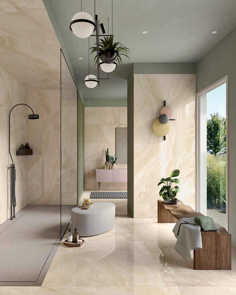 Collections distinguished by material refinement, expressive palettes, and technical innovation – such as the antibacterial Protect® protection or the ultra-thin Slimtech formats – make possible a new idea of the bathroom: intelligent, connected, and scenographic.