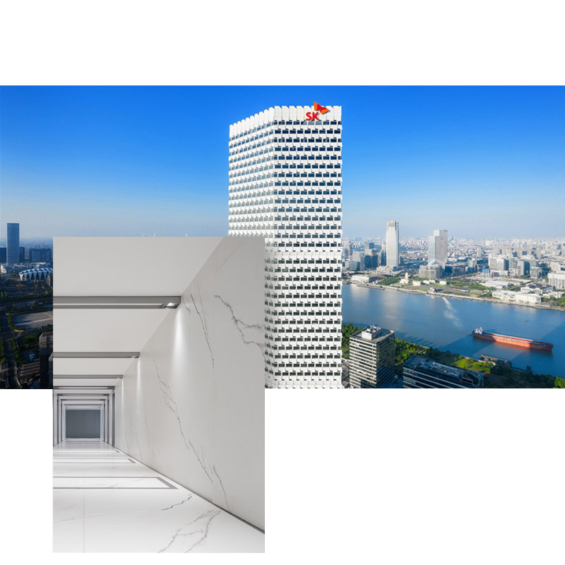 The Pudong area east of the Huangpu River is home to the SK Group Tower, Shanghai’s tenth tallest building, which imperiously towers 275 metres high in the financial and commercial district located a short distance from the Shanghai World Expo Center, whose futuristic pavilions attract many visitors, and Pudong International Airport, one of China’s main airports.
