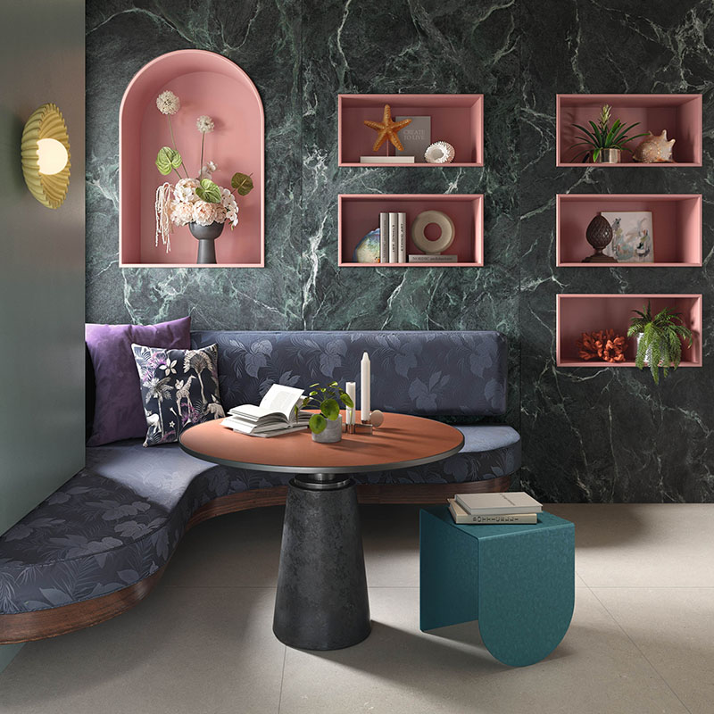The latest addition to Lea Ceramiche’s collections, Noblesse celebrates marble, reinterpreting it through twelve striking colour variations. From emerald green to the softly whispered tones of blush pink, the collection demonstrates that even the timeless opulence of marble can make a modern statement, especially when presented in Slimtech's over-sized, ultra-thin formats, perfect for sophisticated interior design projects in which visual continuity is valued.