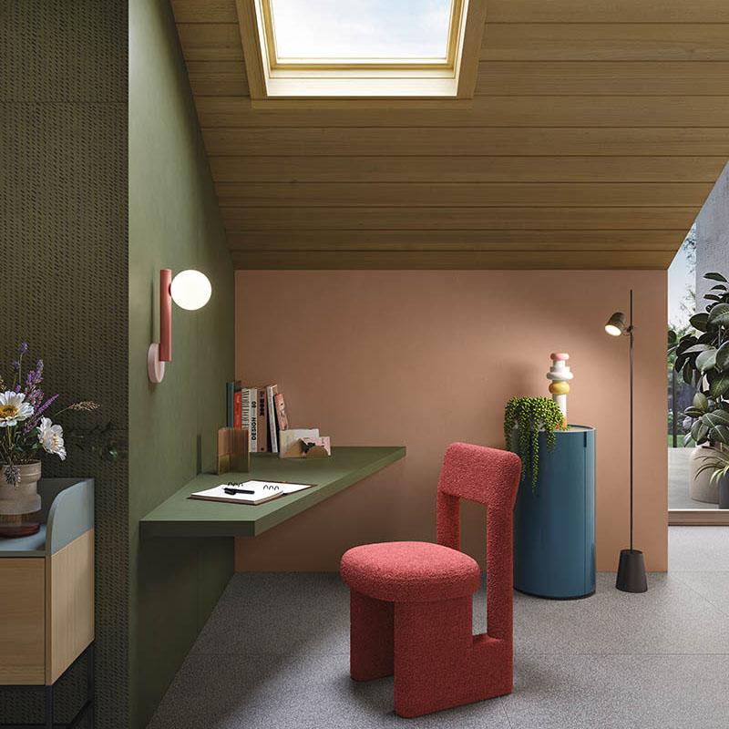 More and more architects and creatives are embracing bold, saturated colour blocks to sculpt spaces, enhance volumes and create rhythm. This strong, daring, yet surprisingly versatile aesthetic finds the perfect medium in Lea Ceramiche surfaces, which serve as an ideal tool for bringing innovative ideas to life.