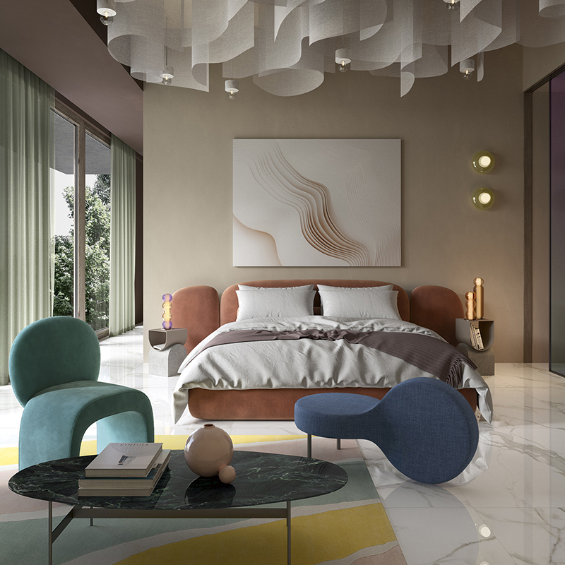 The collection exalts the allure of marble’s aesthetic, resulting in spaces with a distinctly modern feel and a look that is perfectly in line with the Digital Dreamscape trend.