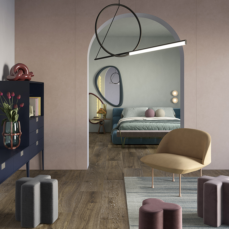 In this context, ceramic surfaces take centre stage, offering textures and finishes that turn fantasy into reality. Thus, each room becomes a visual and sensory experience, redefining the concept of “cosy”, masterfully brought to life by Lea Ceramiche’s collections, which combine a visionary aesthetic with outstanding technical performance and one-of-a-kind textures. These solutions uniquely and flawlessly mimic marble, stone, concrete, and wood, while leaving room to experiment with shapes, colours, and surfaces. The extensive and versatile collections of laminated and porcelain stoneware boast sophisticated decorative details that further strengthen the brand’s distinctive character.