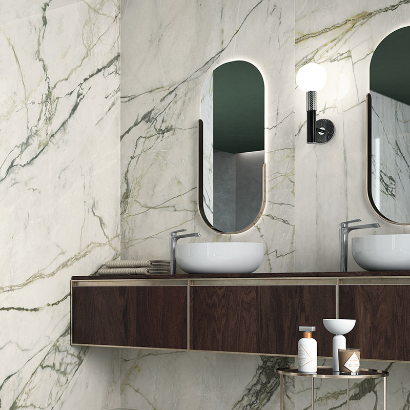 If you want a sophisticated and modern bathroom, that reflects your love for design, then a marble-look product is right for you. Thanks to the latest decorative technologies, porcelain stoneware is able to mimic any natural material. Not only that, but the realism of these ceramic versions is reaching heights that up until just a few years ago were unimaginable. For those who love the beauty of marble and the luxurious atmosphere that it creates, there is a true wealth of options. In this article, we will explore the main types of marble looks and share some ideas for how to best use this very popular material.