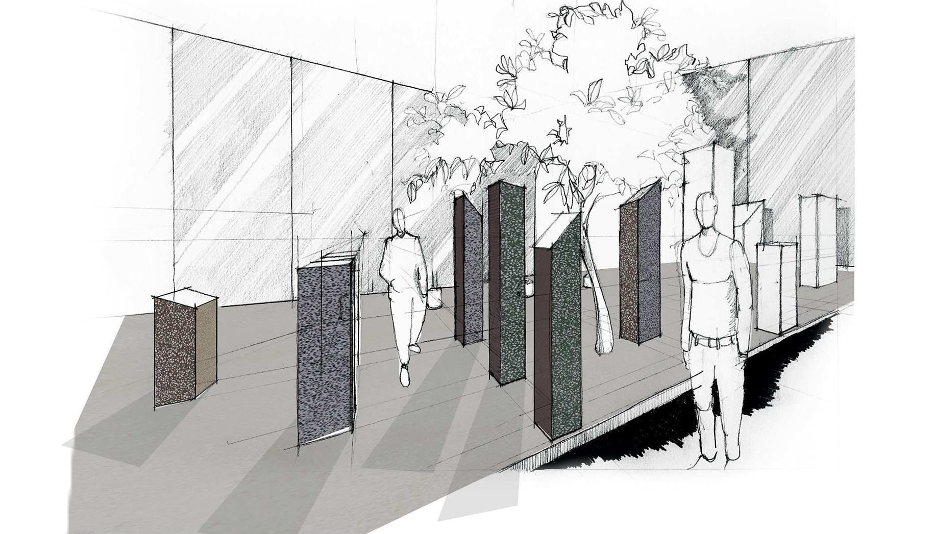 Endless Landscape adorns the city space, turning it into both a landscape and a tactile garden, within which we find the Italian spirit of the natural materials that inspired it: Verde Alpi marble, the ochre of Sienna, the rust of Cotto Lombardo, and the grey of Pietra Serena. Grafting itself to the surrounding environment, this new architectural landscape suggests a perfect balance of shapes, colours and materials that together create a special haven within the urban fabric.