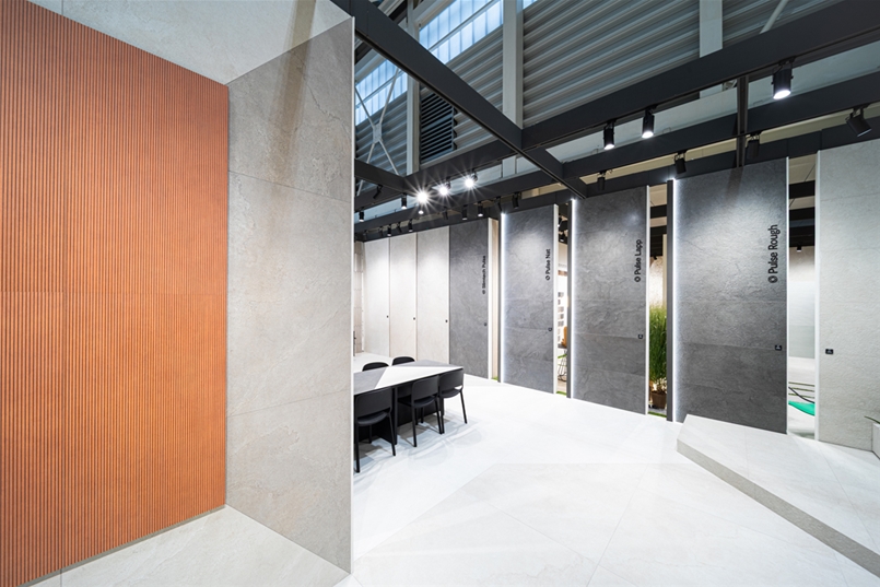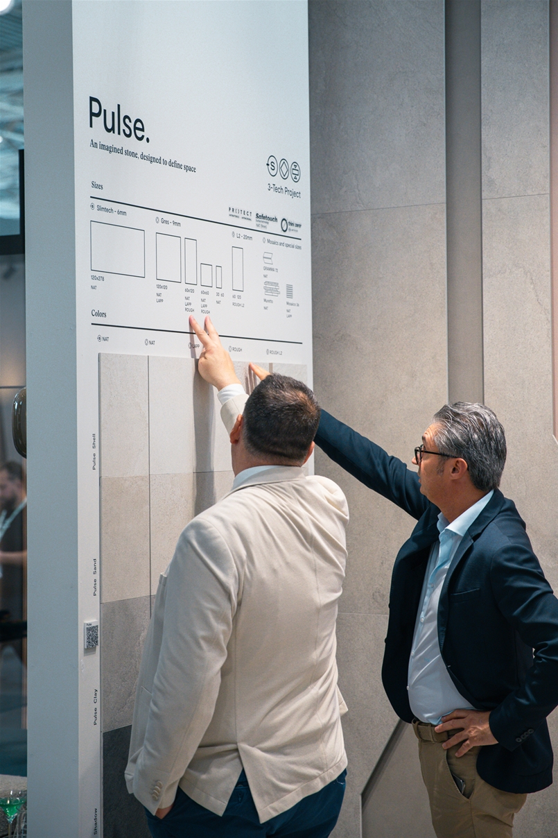 The exclusive preview featured Pulse, the new collection that interpreted natural matter as a creative act, not as a replica, generating an imagined stone. An elegant, powerful, contemporary surface designed to give strength and visual coherence to any space. Alongside Pulse, Lea Ceramiche presented Slimtech Intense, the ultra-thin slab extension of the renowned Intense collection: large formats, new structures, and even more compositional freedom.