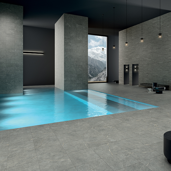 A solution that stems from a deep and mature stylistic research, accompanied by the application of the best production and decorative technologies available, such as the innovation introduced by Panariagroup that allows patterns to be perfectly synchronised with the three-dimensional structure created on the surface. The result is an extremely realistic product in which the distinctive features and the typical qualities of stone are recognisable, along with the precious and unmistakable characteristics of the best marbles in nature. An exclusive effect that transcends all visual and tactile experiences previously explored by ceramic products.