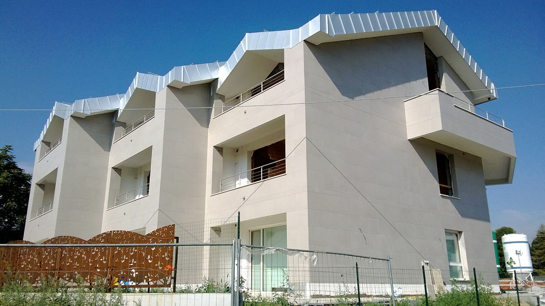 An external thermal insulation system is a layer that insulates the outside cladding of a building to improve thermal efficiency. The superior technical characteristics and aesthetic qualities of Slimtech tiles make them a perfect solution for elegant external thermal insulation systems. The thermal insulation systems keep the temperature of perimeter walls at milder values, thus generating an active thermal mass that improves the thermal inertia of the building. Not only does thermal insulation reduce heat dispersion, it also optimizes the performance of the wall throughout the seasons. In the summer, by increasing external insulation, the flow of heat that would require intensive use of air conditioning is greatly reduced. In the winter, the walls that are insulated from the outside cold create thermal exchange almost exclusively with the internal heated space of the building. Slimtech tiles, with their technical characteristics and unique beauty, are an ideal solution for thermal insulation systems.