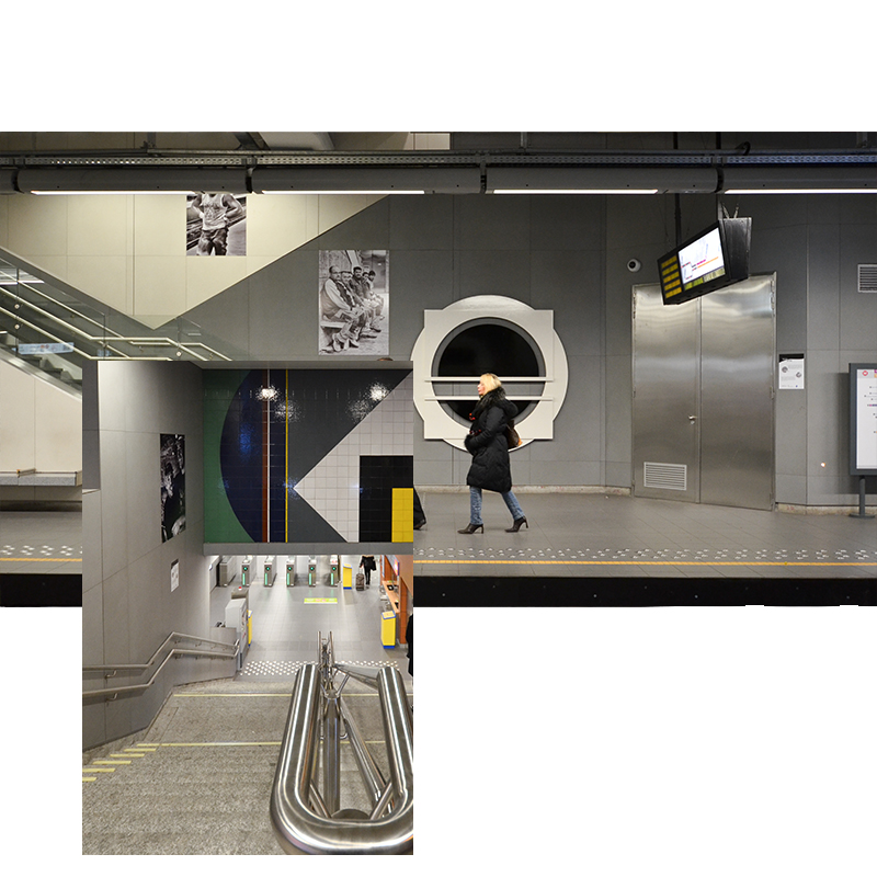 Although the origins of the Brussels metro network date back further, the first line went into operation in September 1976. Consisting of 4 dedicated metro lines and 3 tramways, it encompasses 59 stations and offers the city an excellent service. For the Arts-Loi station, located right in the centre of the city beneath the intersection of rue de la Loi and avenue des Arts, the restyling plan included the insertion of Lea Ceramiche’s new generation Slimtech ceramic slabs as a covering for most of the walls.