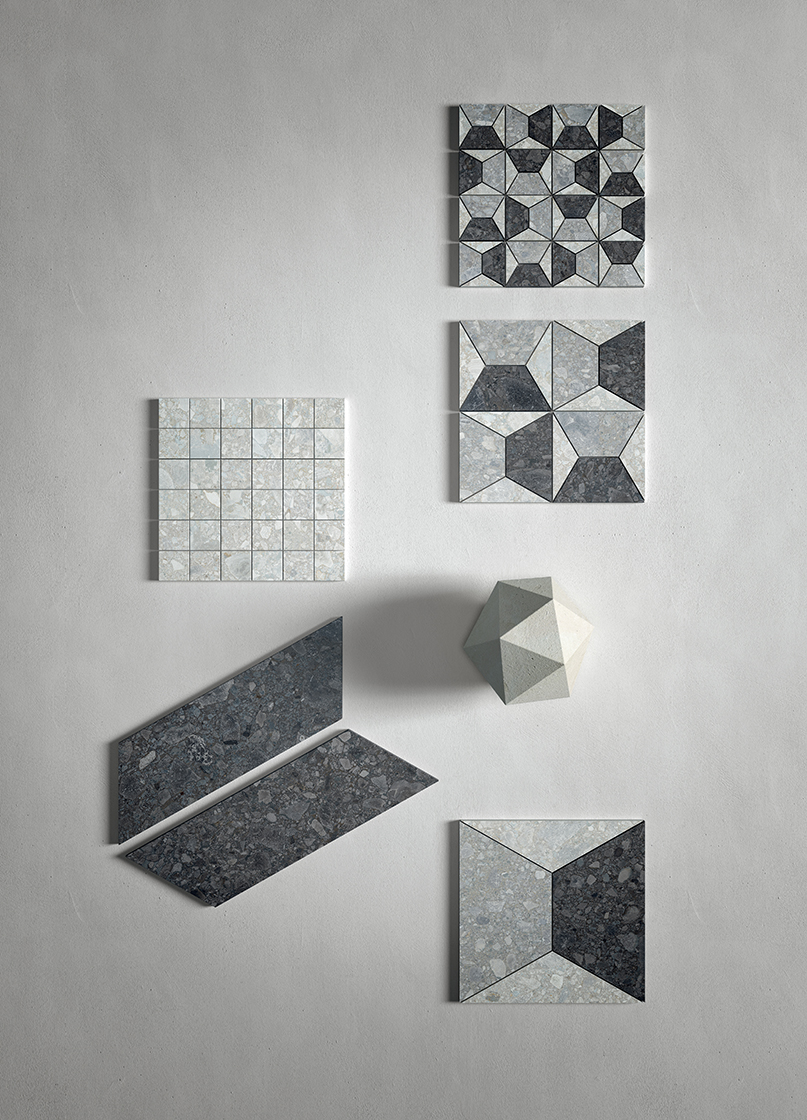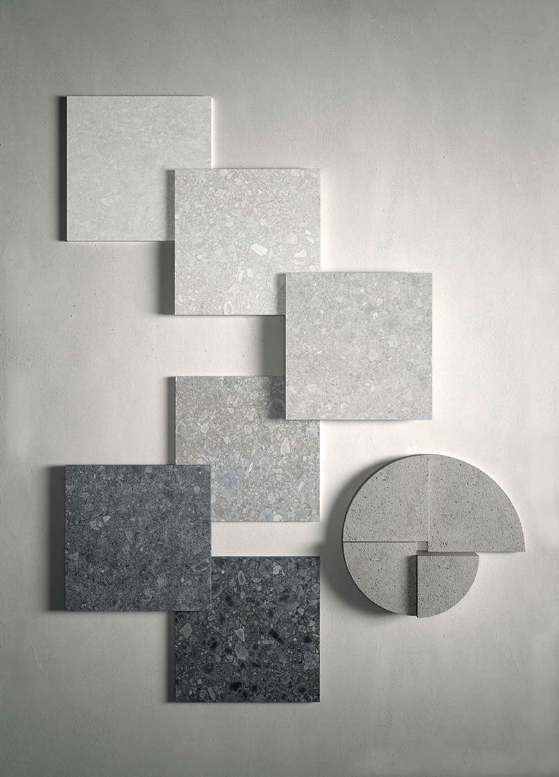 Side Stone offers a fresh perspective on Ceppo di Gré, an Italian stone quarried near Lake Iseo that has shaped the architectural identity of 20th-century Milan. Lea Ceramiche reinterprets and enhances the expressive power of this iconic mineral texture through a rich and distinctive graphic design, inspired by the stone aggregate and its decorative potential.