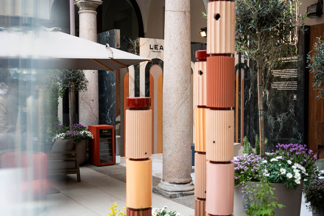 Conceived as an open-air creative lab, the installation invited visitors to explore unexpected combinations, discover the expressive power of juxtaposition, and reflect on the idea of physical and visual layering as a contemporary design language. The fluid composition of ceramic arches, multilevel surfaces, and dynamic lighting created an immersive system where every detail emphasized nuance, depth, technology, and connection. A visual ecosystem in constant evolution, narrating the versatility of Lea materials and their active role in the construction of architectural storytelling.
