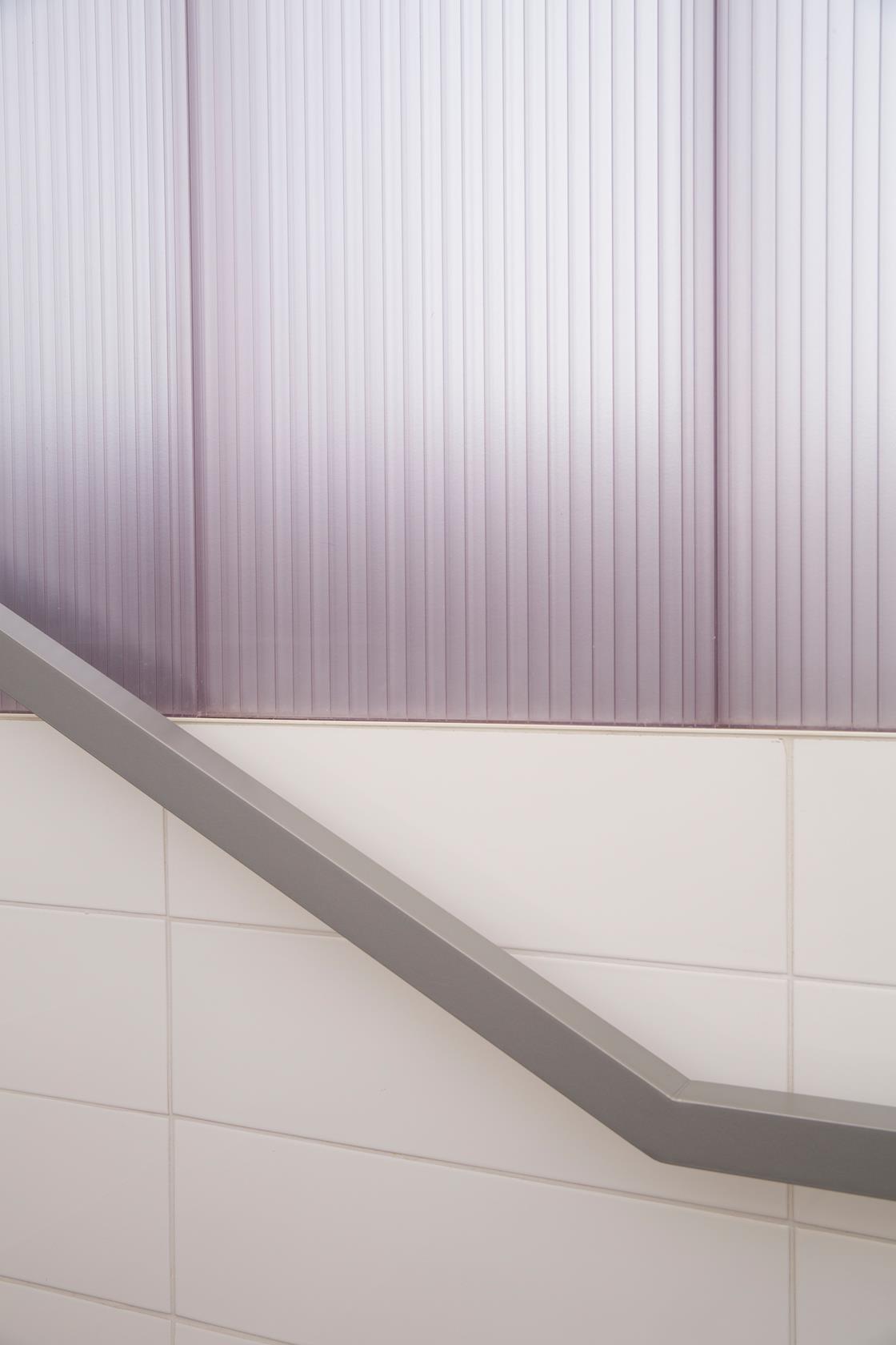 Absolute Total White was also used for the flooring of some of the service areas, with bespoke 12x12cm tiles produced to create a tight criss-cross pattern on the surface.