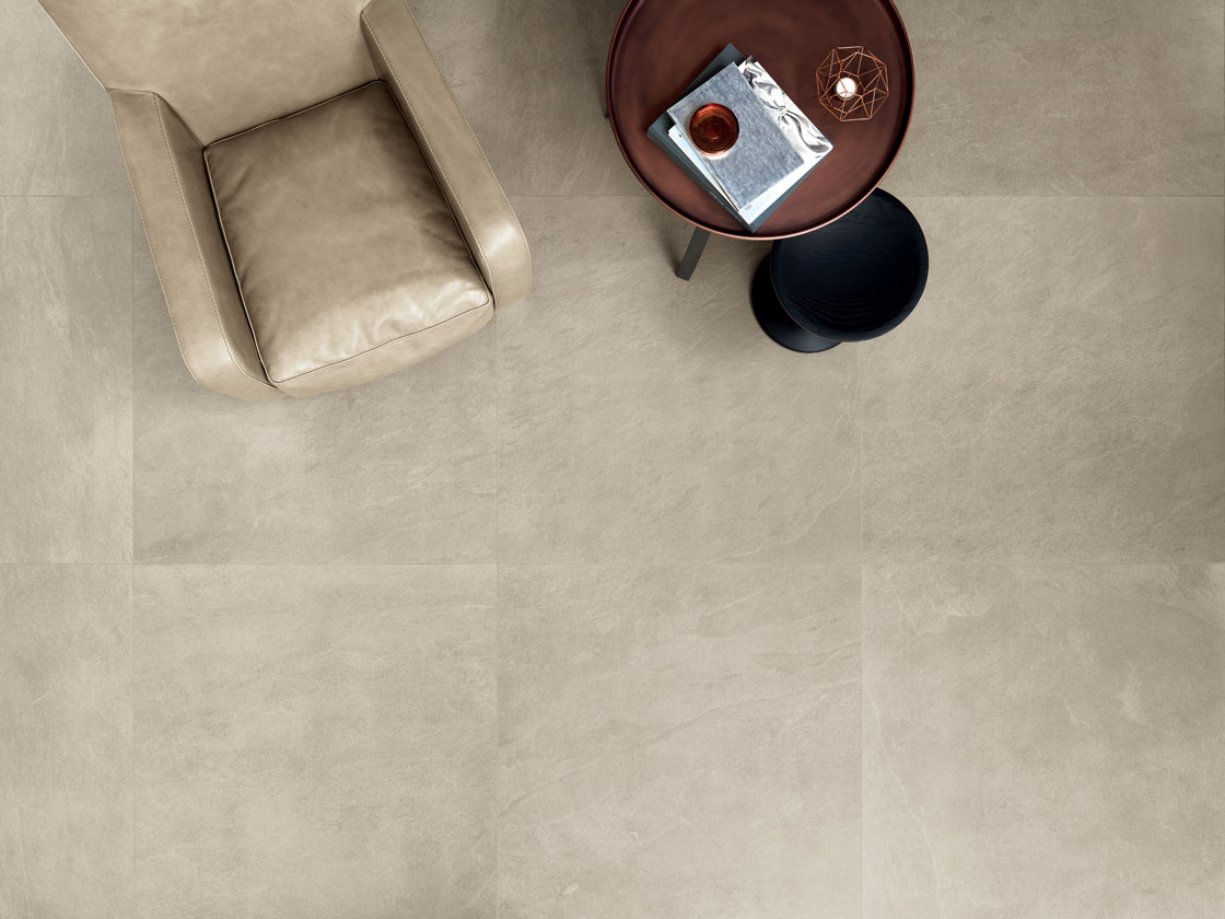 Recreating the iridescent effects typical of sedimentary rock on the surface of the stoneware, Waterfall features textures, irregularities and colour variations, precise expressions of the passage of time. The grey base colours recall the natural oxidation process of stone, a constantly transforming material that changes colour, form and structure, adapting to the evolution of natural phenomena. With the inclusion of other types of rock such as Brazilian quartzite, Lea Ceramiche’s research laboratory has achieved a perfect aesthetic definition, a graphic harmonisation that makes the material elegant and that interacts with the changing light.