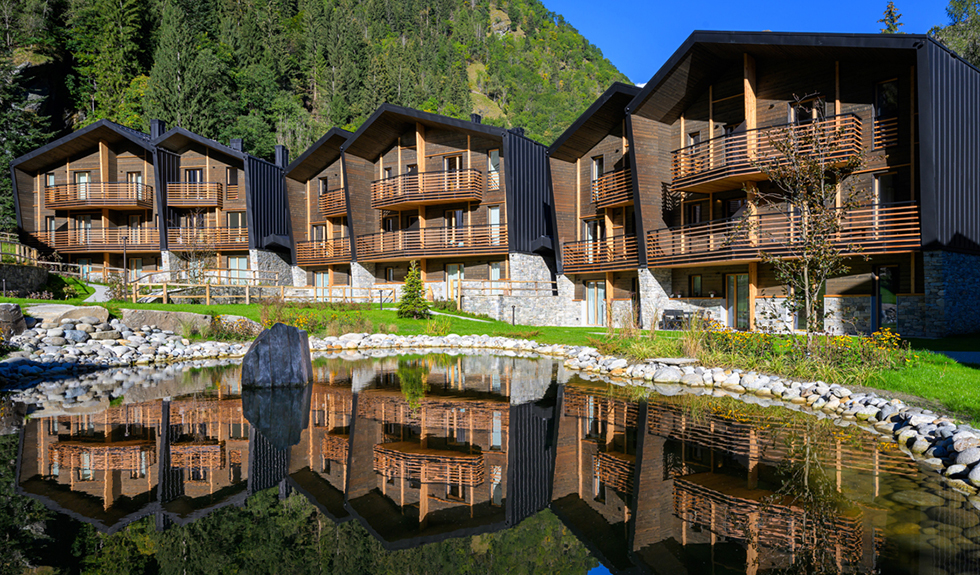 In Alagna Valsesia, among woods and streams at the foot of Monte Rosa, Mountain Village — Cascata d’Otro reinterprets Alpine tradition in a contemporary key. Designed by G22 Projects for Pink Mountains, the residential complex consists of eight A4-class buildings, perfectly integrated into the landscape and conceived for a new way of living the mountains, sustainable and refined.