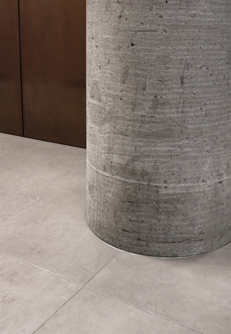 The innovative, certified Slimtech Easy dry installation system without adhesive was used for the restyling of the offices, a solution that revolutionises how we conceive and imagine a new ceramic floor covering with unprecedented simplicity and speed, as well as very high-quality results. Thanks to this innovative system, it is possible to renovate spaces without the need for any invasive demolition or renovation work, reducing work times and costs by an average of 30%. Thanks to the ultra-thin Slimtech Plus slabs, which have a total thickness of just 7 mm, this technology makes it possible to create a new ultra-resistant porcelain stoneware floor that is particularly suitable for indoor office environments. The slabs are accompanied by the Silent soundproofing mat, specially designed for this solution, on which the surfaces are laid and then sealed with a special filler, available in two different variants – fast or matt – which makes them stable, immediately walkable, waterproof and ultra-resistant.