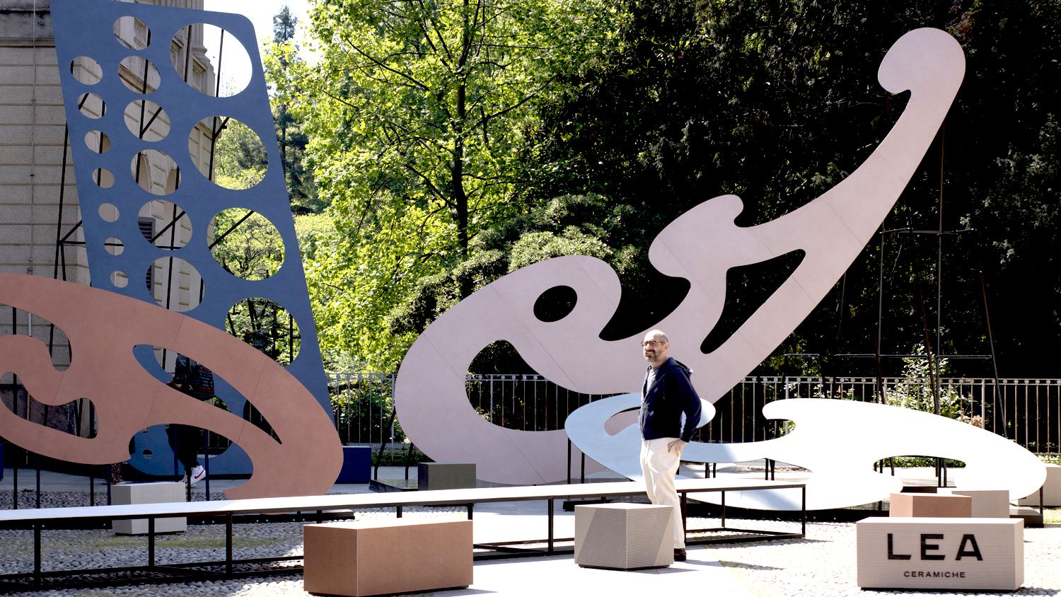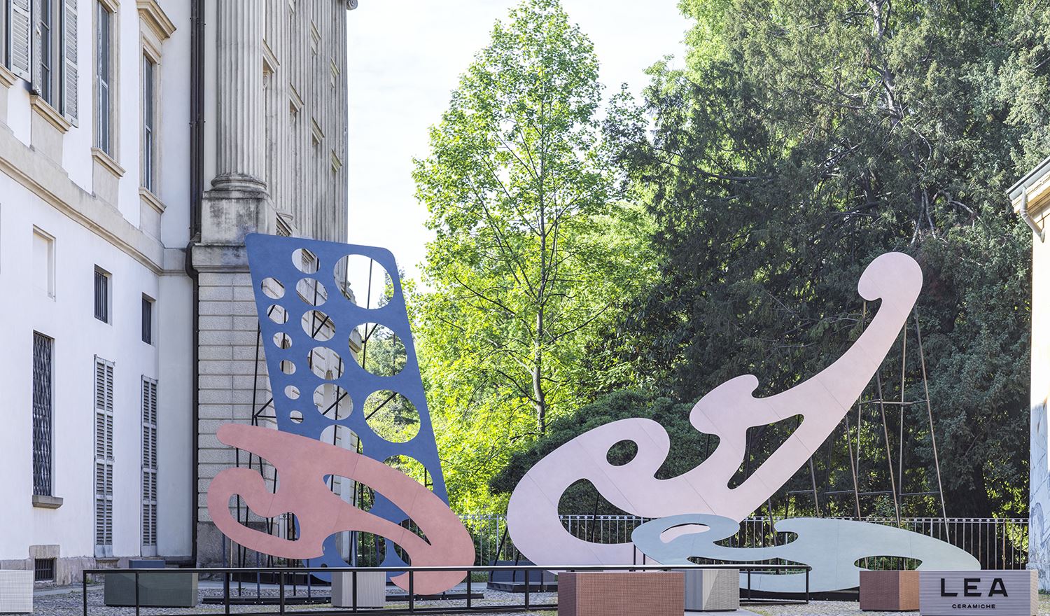 “There are objects from the not-so-distant "analog" era that can still convey the manual skill of a certain way of designing. "Tools and Space" celebrates, in the surrealistic manner of Savinio's "Games in the Forest", an era when tools from a recent past (compasses, French curves, or rulers) were used to draw space and architecture. This installation, and specifically the Pigmenti collection by Lea Ceramiche, also becomes an expressive tool to generate new forms and volumes, a sort of surrealistic monument of an ideal Italian piazza by De Chirico, suspended between the Neoclassical architecture of Palazzo Reale and that of the PAC by Ignazio Gardella.”